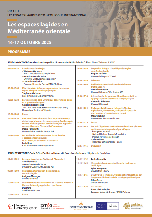 This symposium is part of a series of three workshops (2022-2024) examining Ptolemaic rule, from the construction of power (2022 and 2023, European University Cyprus, Nicosia) to its institutional changes (2024, French School of Athens, Athens, 2024). The project aims to move beyond a centralised view of the Ptolemaic kingdom to reveal the interconnections and local adaptations of the Ptolemaic model.