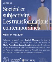 Ce colloque porte sur les formes contemporaines de subjectivité, à savoir les manières dont le sujet s’approprie le monde dans une société de plus en plus marquée par l’individualisation : un sujet devenu la valeur première de nos sociétés, qui se veut l’auteur de son histoire, et dont il convient de tracer la genèse aux fins de mieux circonscrire les assises de ses actuels traits de caractérisation.