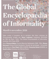 Round table on the occasion of the publication of the Encyclopaedia directed by Alena Ledeneva (2013-2014 Paris IAS fellow / UCL), The Global Encyclopaedia of Informality (Londres, UCL Press, 2018), organized with the support of the Centre Maurice Halbwachs (EHESS-ENS-CNRS).