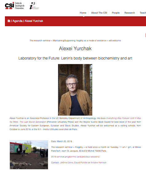 Talk by A. Yurchak, 2017-2018 Paris IAS fellow Talk by A. Yurchak, 2017-2018 Paris IAS fellow Talk by A. Yurchak, 2017-2018 Paris IAS fellow Talk by A. Yurchak, 2017-2018 Paris IAS fellow Talk by A. Yurchak, 2017-2018 Paris IAS fellow Alexei Yurchak presents his research project within the framework of the weekly internal seminar |