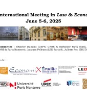 Le workshop International Meeting in Law & Economics, créé en 2014 par le groupe de recherche spécialisé en économie du droit hébergé par le laboratoire EconomiX UMR CNRS et l'Université Paris Nanterre, a pour objectif d'attirer chaque année en Île-de-France les meilleurs spécialistes du domaine. Il est organisé désormais en collaboration avec des partenaires franciliens : le laboratoire CEPN de l’Université Sorbonne Paris Nord, le laboratoire ERUDITE de l’Université Paris-Est Créteil et le Laboratoire d’économie dionysien (LED) de l’Université Vincennes Saint-Denis.