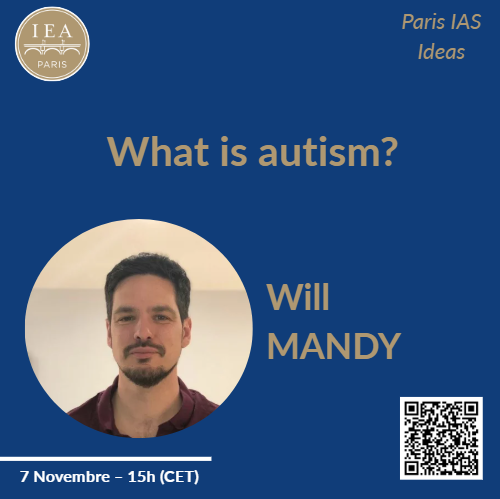 Conférence en ligne Will Mandy, professeur de troubles du développement neurologique au sein de la division de psychologie de l'University College de Londres et chercheur en résidence d'écriture à l'IEA de Paris pour le mois de novembre 2025, dans le cadre du cycle « Paris IAS Ideas ».