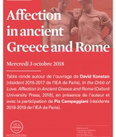 Table ronde autour de l’ouvrage de David Konstan (résident 2016-2017 de l'IEA de Paris), In the Orbit of Love. Affection in Ancient Greece and Rome (Oxford University Press, 2018), en présence de l’auteur et avec la participation de Pia Campeggiani (résidente 2018-2019 de l'IEA de Paris) et Olivier Renaut (Université Paris Nanterre).
