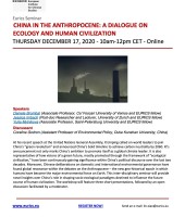 Ce séminaire en ligne interdisciplinaire fournira des aperçus inédits sur le rôle de la Chine dans la formation des paradigmes socio-écologiques destinés à influencer le futur cours de la civilisation humaine. Le séminaire comprendra trois courtes présentations, suivies d'une discussion ouverte animée par un modérateur.
